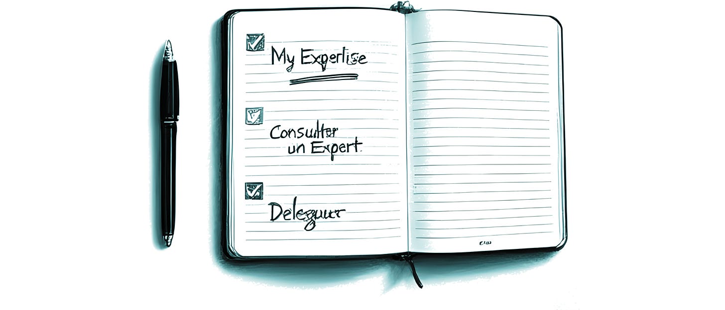 Pick ONE domain where you’ve been making decisions recently, but where your expertise is limited. Marketing, finance, tech, HR - doesn’t matter.