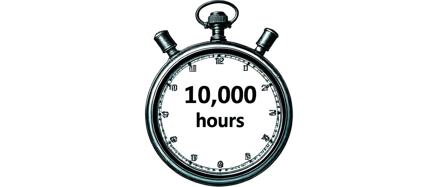 You know the 10,000-hour rule? It takes roughly 10,000 hours of deliberate practice to become expert in a domain.
